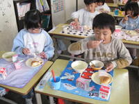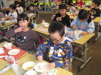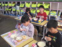 22日には、冬至でしたので、かぼちゃ(なんきん)を使った献立でした。「ん」のつく食べ物を食べて「運」を呼び込む日本の風習を学びました。毎月、地産地消を考えた献立や、季節感や日本の伝統文化、外国の食文化なども取り入れ、工夫を凝らした献立を作成したいただいています。子供達の「ごちそうさまでした!! おいしかったです!!」のあいさつは感謝の気持ちが表れています。