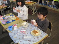 今年の給食は、残すところ2回となりました。今日は、いちごケーキがデザートにつきました。また、唐揚げがたくさんあり、冬が旬の大根が入ったフランスの家庭料理のポトフもあり、季節感がありワクワクする献立でした。いつも以上に笑顔いっぱいで給食をいただいていました。