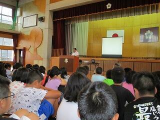 8月27日2校時、全校児童が体育館に集まり「始業式」を行いました。