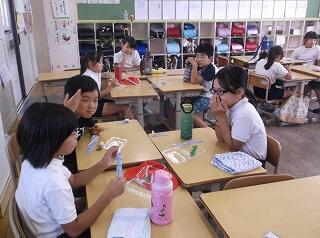 フッ化物洗口が、行われました。見守りのお手伝いをしてくださったPTA保護者の方々、ありがとうございました。1年生は、家庭でもブクブク1分間の練習をさせていただくと有難いです。よろしくお願いいたします。