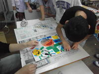 2年生が、紙版画に挑戦していました。私も初めて見る教材「タックカラーかみはんが」。色紙をはさみで切り、切り絵のように貼り合わせ、霧吹きで水に浸すと色紙の色が半紙にカラー印刷されるもの。2年生が楽しそうに作品作りを行っていました。