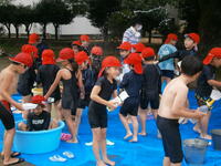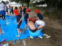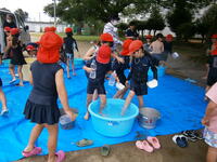 今日は、プールの機械の関係で水遊び(体育)の学習ができませんでしたが、生活科の時間に「夏の遊びをしよう!」を行っています。日差しはありませんが、むしむしする中の水遊びは気持ちよさそうです!歓声が沸き起こってます!