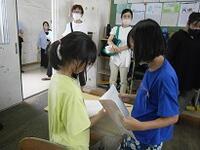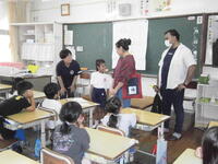 1年生にネパールより転入生が来ることになりました。日本での諸準備があるため、毎日の登校は9月からになります。今日は、初めての日本の学校での雰囲気を味わってもらうために登校してもらいました。日本語が分からないのですが、みんなと楽しそうに交流していました。1年生もみんな大喜びで、積極的にコミュニケーションをとっていました。終業式の日には、全校児童へ紹介したいと思います。