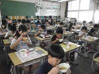 今日は参観日(下学年)にあわせ、給食試食会が行われました。子どもたちの給食準備を見ていただき、給食の試食、その後学校栄養職員の講話が行われました。学校給食の工夫等、見ていただけたのではないかと思います。
