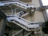 今日は、イオン様と合同による避難訓練が行われました。通常の地震避難では校舎3階への2次避難となりますが、今回は、校舎が危険である又は想定以上の津波が予想される場合の避難としてイオン様への避難訓練を実施しました。また、放課後や休日等学校外へ避難する場所としてイオンに避難することができることを確認することもできました。イオンに避難する時に、避難場所となっている屋上までの誘導もしていただきました。様々な状況に合わせた避難ができる「考動=幸動」へつながるものだと感じています。