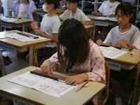 4年生の習字の学習です。集中していました。文字の形に気をつけながら、一画一画丁寧にバランスのよい文字を書いていました。