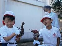 今日は、2年生が春に植えた芋の収穫を行いました。数はそこまで多くは無かったものの立派な芋がたくさん収穫できました。虫た格闘格闘しながらも、楽しそうに芋掘りを行っていました。