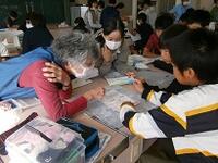 今日の2・3校時に、恒富地区高齢者コミュニティセンター都の交流が行われました。センターの「洋裁リフォーム教室」の「福寿草」の方々へ学校へ来ていただき、6年生にミシンの使い方&縫い方教室を行ってもらいました。つまり、家庭科の袋作りの講師としての来校でした。