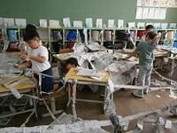4年生の算数の面積の学習です。数字で1㎡と理解できていても、実際の大きさを感じることはできません。量感を感じるために、新聞紙で1㎡を実際に作ってみて、大きさを実感する学習でした。実際に1㎡を作った後は、4人で囲んでみたりして大きさを実感していいました。実際に自宅でも、1㎡を実感させてみてください。