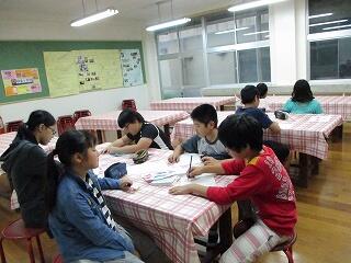 赤団の全体練習は、2日の予定のため、この日は1年生と応援リーダーが生活科室で練習していました。