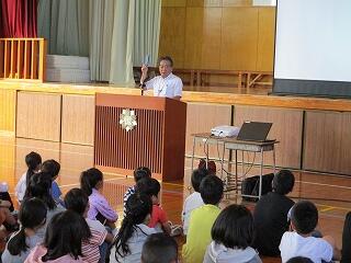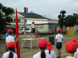 校長先生のお話では、運動会の頑張りを称賛されたり、延岡にゆかりのあるノーベル賞を受賞した「吉野 彰」を紹介されたり、2学期後半の目標をもって生活をすることの大切さを話されたりしました。