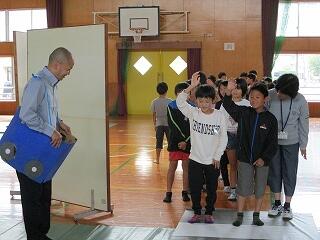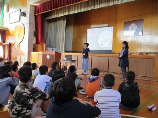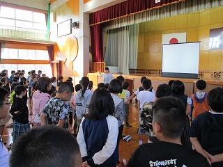 10月10日(木)朝、全校児童が体育館に集まり、全校集会が行われました。