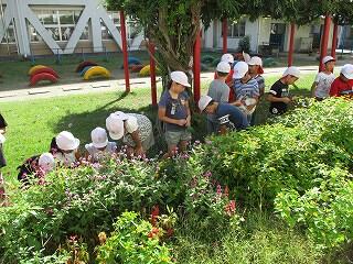 まだ、咲いていた花を集めて、花束を作り教室へ持ち帰る児童もいました。