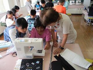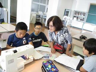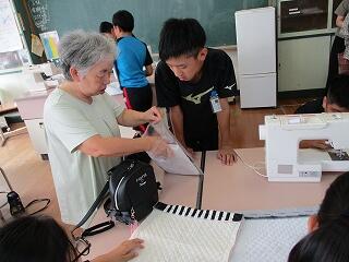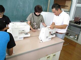 そこで、5名の方にミシンボランティアに来ていただき、学習の様子を見届けてもらい、うまく出来ていないときには教えていただきました。