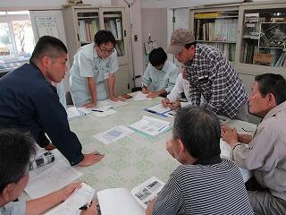 地図上で危険箇所を確認したり、普段の状況を区長さんに説明してもらったりしました。そして、今後、児童生徒等の安全確保のために、それぞれの立場でどのようなことをしていけばよいかを協議していきました。
