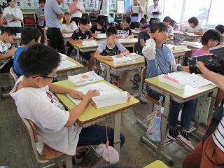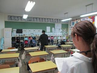 1人の先生は、早朝より来校され本校の先生の仕事ぶりを熱心に参観されていました。次の写真は、2年教室での道徳授業の様子です。