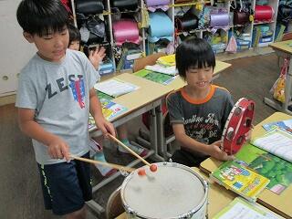 教室をのぞくと、楽しそうに歌を歌ったり、楽器の音を確認しながら音を鳴らしたりする姿が見られました。