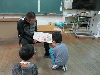 10月29日朝、絵本の広場が行われました。「絵本の広場」とは、先生の読み聞かせです。子どもたちは、事前に絵本の写真や本の紹介を見て、「聞いてみたいなあ」という本を選んでおきます。