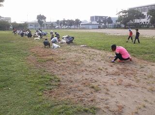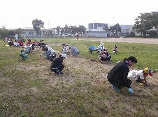 放課後、運動場を使用している恒富レッドナイン(軟式少年野球)、恒富サッカーが、定期的にグランドの整備をしてくださっています。除草作業をしたり、グランドをならしたりと子どもと保護者の協力できれいな運動場で活動してくださっています。ありがとうございます。