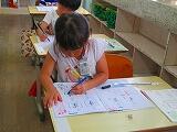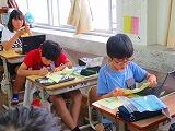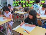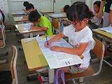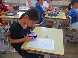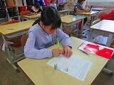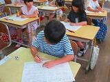 1年生の書写の時間です。入学当初は、筆圧の弱い字だったのが、しっかりとした筆圧で力強い字が書けるようになっています。また、とても丁寧に書いていました。よくがんばっています。
