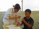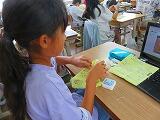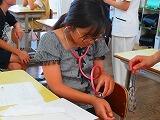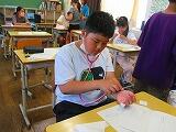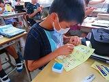 5年生が初めての裁縫に挑戦です。玉結び、玉留め、波縫いにチャレンジ!一針一針丁寧に縫っていました。