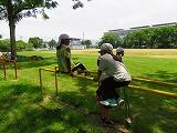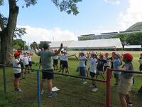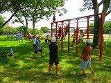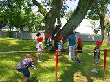 舞に津暑い日が続いています。学校では毎日熱中症指数を計測し、子どもたちの健康と安全の管理を行っています。本校には、小鳥の森があるため、運動場の木陰で遊ぶことが可能な日もあります。今日は、小鳥の森の木陰で遊びました。