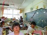 図工「ひもでつないで」の様子です。教室や廊下がひもでいっぱい!秘密基地みたいで楽しそうでした。