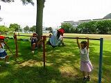 今日は熱中症指数が高かったため全校でのふれあいタイムが学級でのふれあいタイムへ変更となりました。フルーツバスケット、ハンカチ落とし、小鳥の森での遊具遊び、体育館でのドッジボールなど行いました。