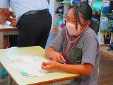 今年の6年生のキャリア教育は、看護師さんに来ていただき、お仕事に就くまでのことや、仕事を始めてからのことなどお話を聞きました。また、聴診器をもってきていただき、自分の脈拍音を聞くこともできました。
