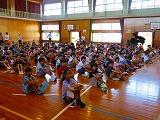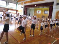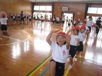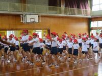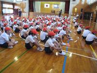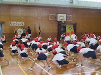 10月16日(水)の1校時に運動会前最後の全体練習を行いました。これまでの降雨のため、運動場が使用できず体育館で練習しました。