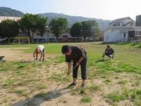 そこで、明日(20日)の朝7時から運動会の実施に向けてグランド整備を行います。保護者の皆様のお力もお借しいただけると幸いです。よろしくお願い致します。