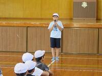 昼休みの時間を利用して、リーダーの練習が始まりました。大きな声を出し、先頭に立って行動しなければなりません。まだまだ恥ずかしがっている様子が伺えます。これからの練習で自覚が芽生えてきます。大きく成長することを祈って鍛えていきます!