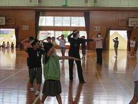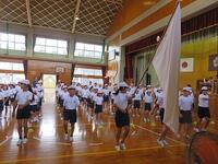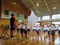 今日の全体練習は、雨天のため体育館となりました。対団リレー等の練習の予定でしたが、開会式からエーール交換、退場までの流れ練習及び応援の練習となりました。団長、副団長、リーダーを中心にみんながんばっています。