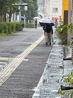 雨天時に傘をさして登校する際、ついつい広がってしまいます。今日もそのような姿が見られました。