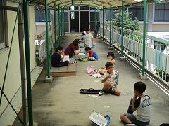 今日は、渡り廊下に出て、間隔を取って、初めて音を出しての鍵盤ハーモニカの練習をしました。