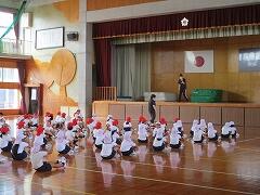 人気アニメの主題歌の曲に合わせ、リズムに乗って、体全体を使って、元気よく踊りました。速いテンポの曲ですが、子どもたちは上手に踊っています。