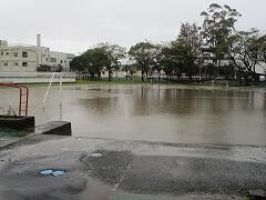 お昼に水は引きましたが、午後もしとしと雨が降り続き、グランドの状態から、明日の全体練習③は、来週に延期にしました。