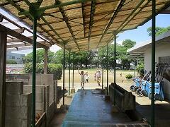 昨年は、北校舎西側の屋根のある通路の部分でしたが、今年は、運動場の水飲み場の東側放送塔の前にも追加しました。