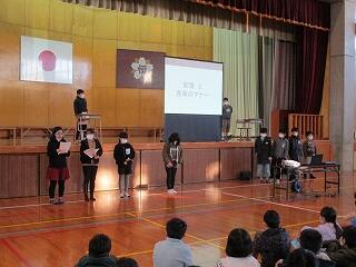 初めに校長先生のお話がありました。「現在の学年も残り2ヶ月。学習等のまとめの時期です。健康に留意しながら、一日一日を大切に生活していきましょう。」といったお話がありました。