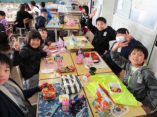 各教室を見て回ると、多くの子どもたちが笑顔で弁当箱を見せてくれました。