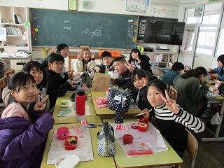 その後、給食を食べるまでにお世話になる方々への感謝の気持ちを込めたお手紙や手作りメダルの贈呈を行いました。給食準備前の調理員さんにも来場していただき、感謝の気持ちを伝えることができました。