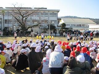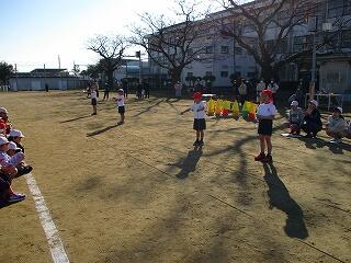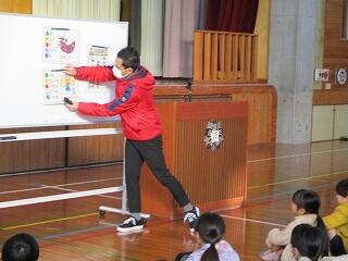 1月29日(水)2・3校時、1年生は体育館で校区内にある保育園の年長さんとの交流会を行いました。