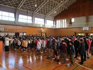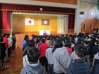 初めに校長先生のお話がありました。「現在の学年も残り2ヶ月。学習等のまとめの時期です。健康に留意しながら、一日一日を大切に生活していきましょう。」といったお話がありました。