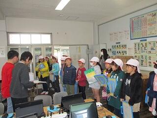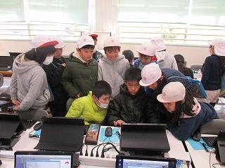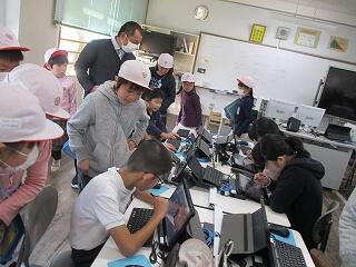 パソコン室では、6年生の部長さん・副部長さんのクラブ活動紹介の後、実際にパソコンでどのようなことをしているのか見せていきました。