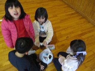 6つの班に分かれて、13もの遊びを、それぞれ一緒にしながら楽しみました。やり方が分からない保育園の年長さんに1年生が教えてあげる場面も見られ、1年生の成長を感じました。