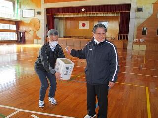 1月24日(金)昼休み、運営委員会の児童と家庭教育学級の担当保護者、担当職員、教頭がペットボトルキャップをイオン延岡店へ届けてきました。