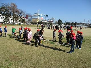たこあげ・こま回し・竹とんぼ・羽根つき・竹馬などを体験しました。こま回しは、校長先生がコツを熱心に教えてくれていました。