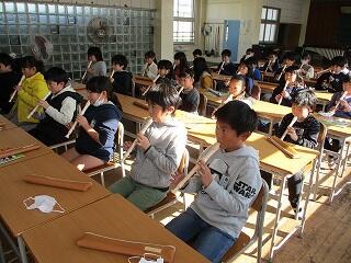 1月23日(木)3校時、音楽室で3年生対象の「リコーダー指導」がありました。講師として日本リコーダー協会の方が来て下さいました。