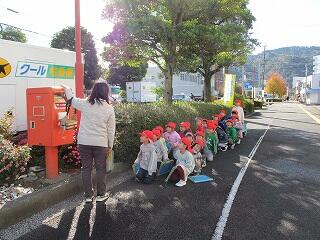 12月13日(金)3校時、1年生は生活科の学習で「年賀はがき」を書き、そのはがきを郵便ポストへ投函してきました。