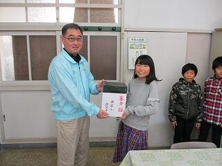 12月23日(月)昼休み、社会福祉協議会へ来校していただき、校内及びイオン延岡店で集めた募金を受け渡しました。